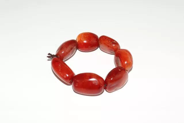 无论在西方的旧约圣经还是东方佛教的典籍中,都有许多关于南红玛瑙的记载。在佛教中,被视为七宝之一,在以前的藏区,只有宗教领袖和贵族才能够佩戴南红,被尊为佛家至宝。而这串南红手串的珍贵之处更在于其七颗玛瑙都是产于千万年前的原石,未经任何人工雕琢,却拥有胜过人工刻画的魅力一颗原石便价值无限,七颗大小和色泽相近的原石能汇合在一起,尤其难得,值得藏家珍视之可谓:“杰然天成红原石,稀有珍贵赤无比”。